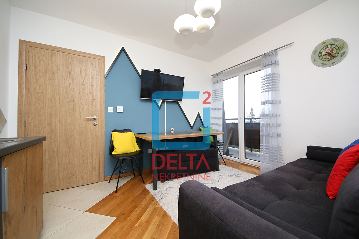 Prodaje se namješten dvosoban apartman uknjižene površine 32m2, na trećem spratu, sa parking mjestom i skijašnicom u prizemlju zgrade, Jahorina.