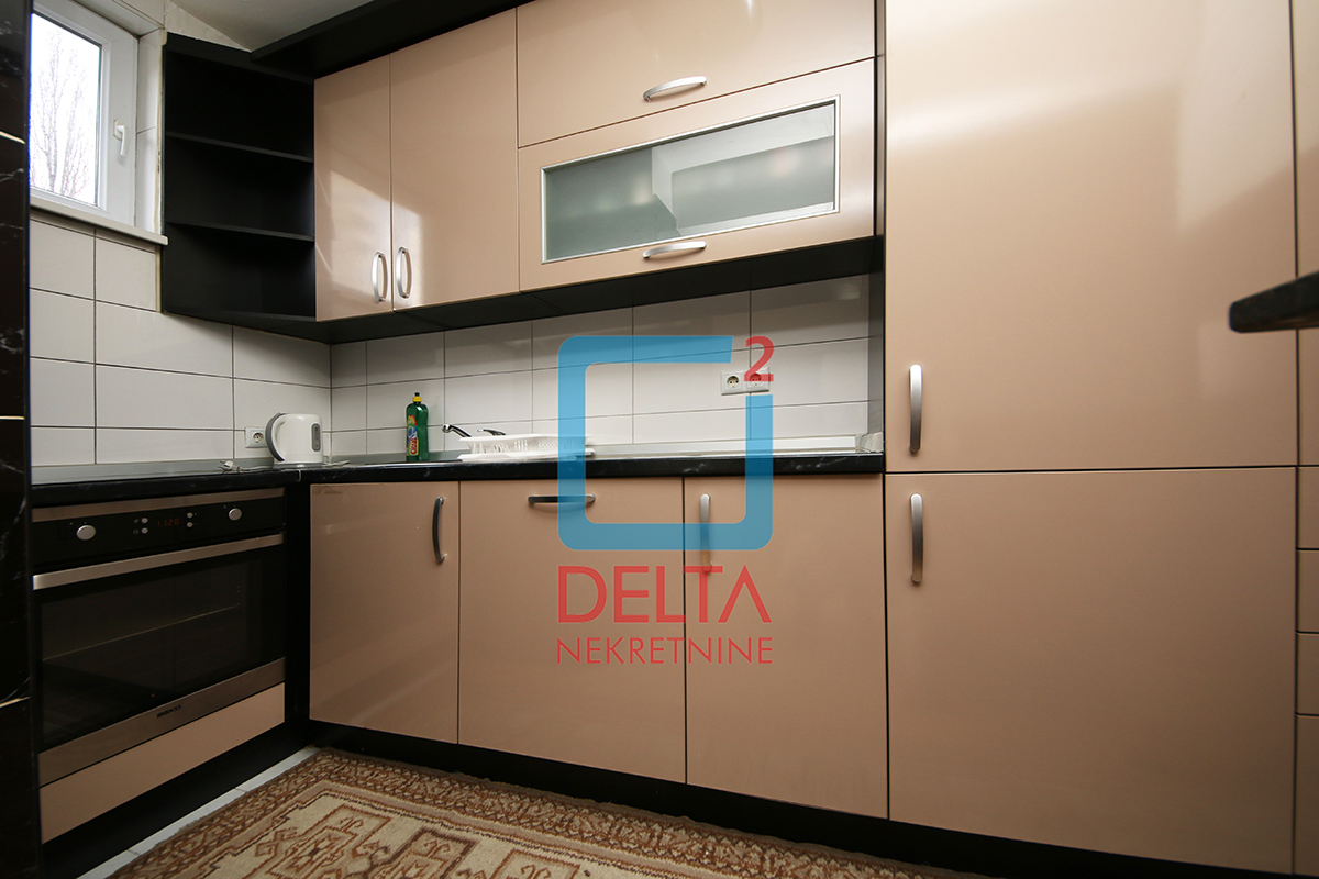 -kuhinja sa elementima i uređajima (štednjak, frižider, mašina za suđe, napa);