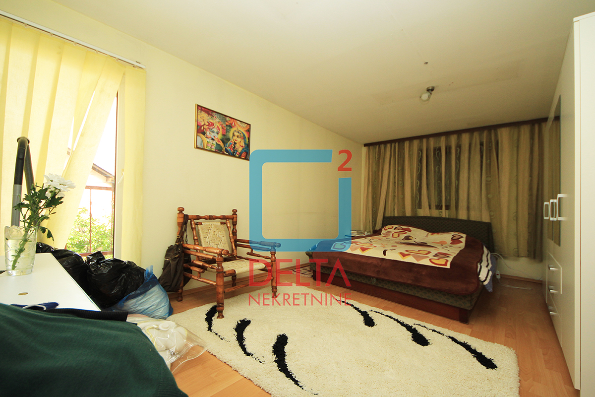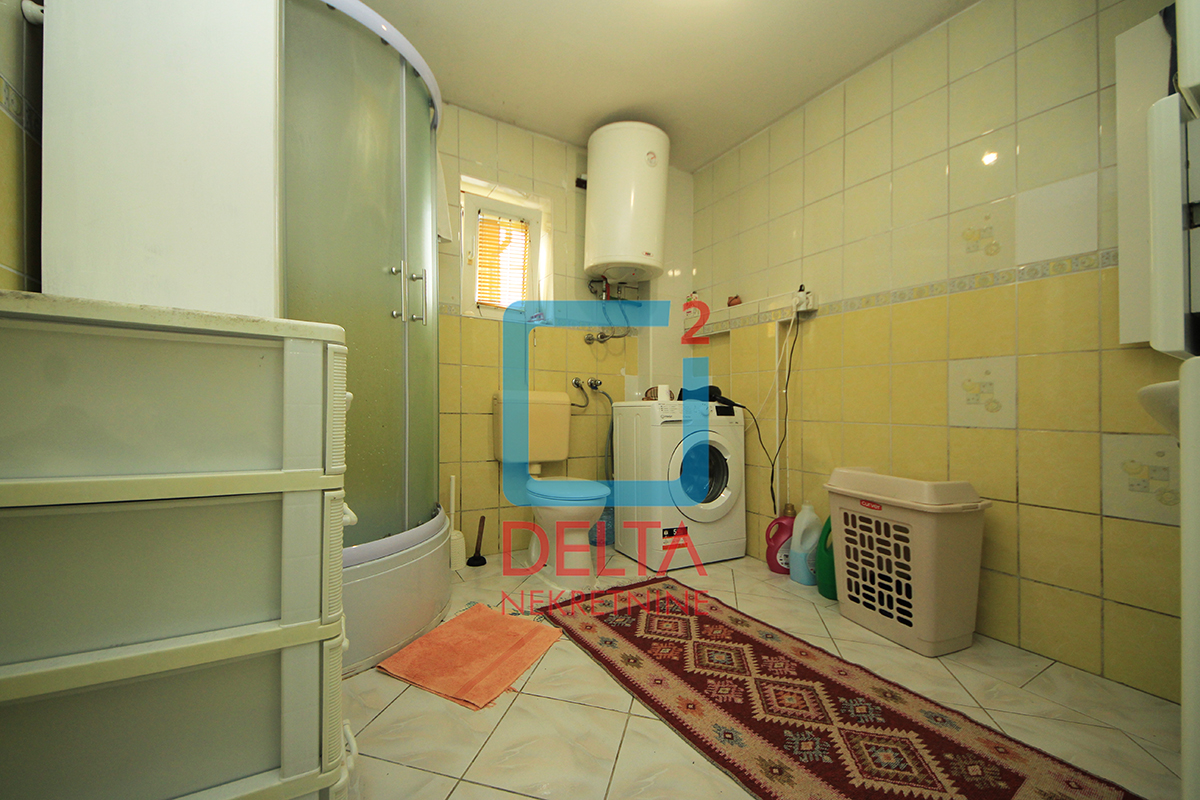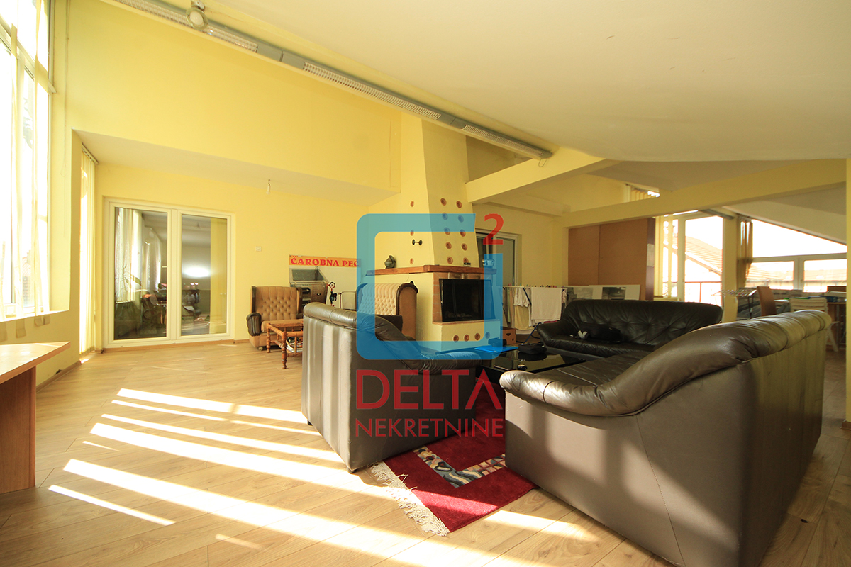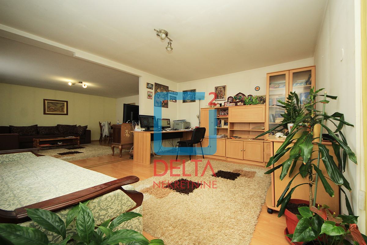Stambena površina koja se nalazi na prvom spratu kuće sa zasebnim ulazom iznosi 200m2 i sastoji se od dvije spavaće sobe, kupatila, prostranog „open space“ prostora u sklopu kojeg se nadopunjavaju kuhinja, dnevni boravak i mala radna soba, te „open space“ prostora površine od 100m2 koji može biti korišten kao kancelarijski prostor uz blage prerade. Nekretnina posjeduje i dva velika balkona.