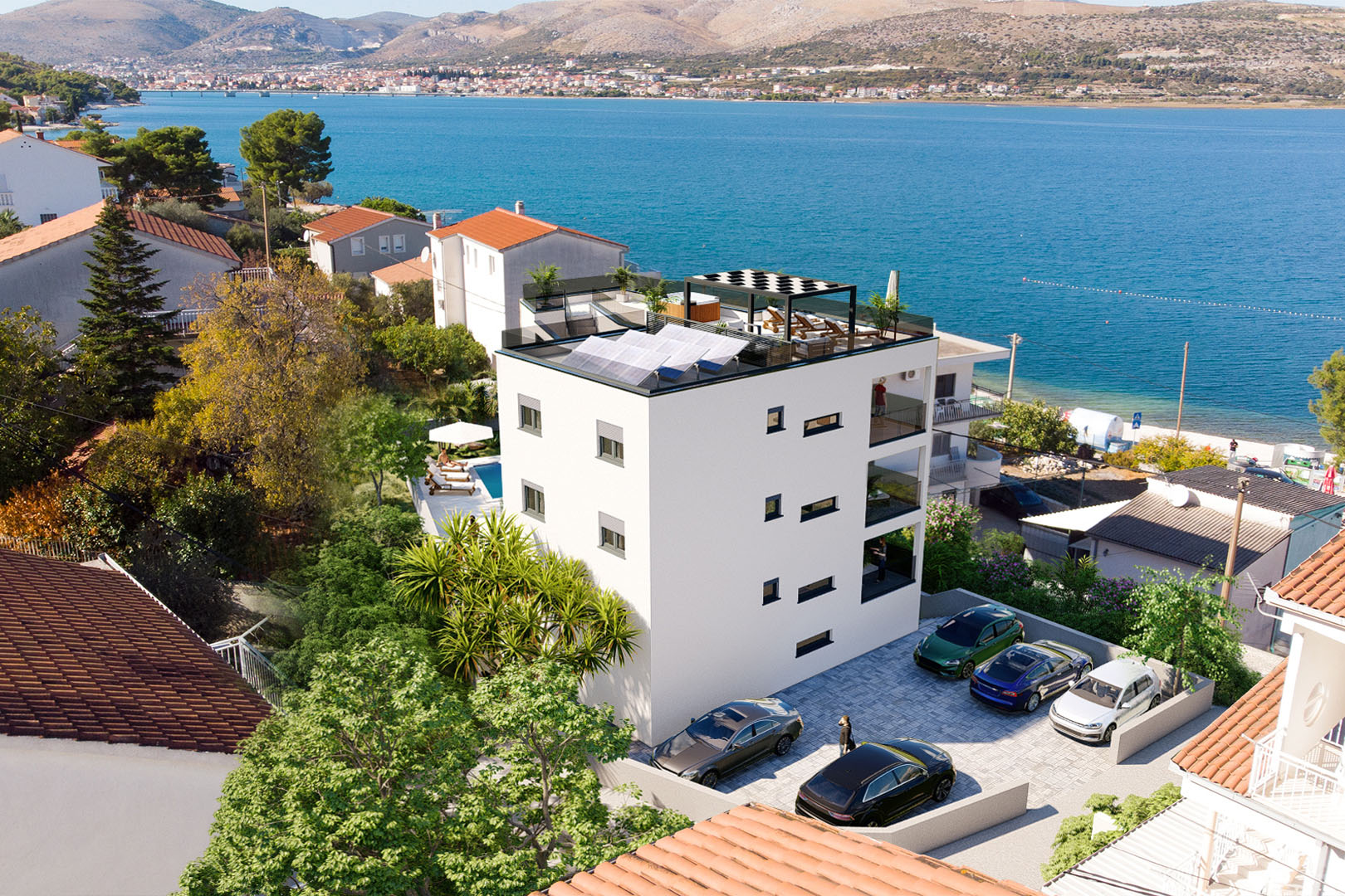 Prodaje se trosoban apartman 80m2 na prizemlju novoizgrađene zgrade “Fortuna Residence” u neposrednoj blizini morske obale u naselju Mastrinka, otok Čiovo.